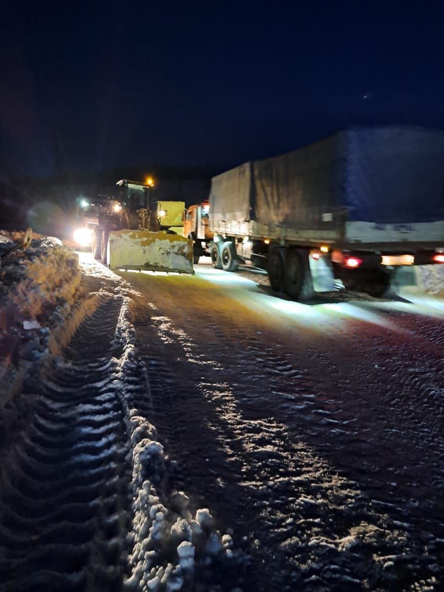 Застрявшие перевозчики обратились за помощью к ФКУ Упрдор «Вилюй». По поручению начальника ФКУ Упрдор «Вилюй» Николая Ивановича Андреева дорожная техника, задействованная на федеральной автомобильной дороге Р-504 «Колыма», была оперативно переброшена на помощь к застрявшим водителям. Помощь оказали подрядные организации ФКУ Упрдор «Вилюй»: АО «ДЭП №135»: УАЗ – 1 ед., автогрейдер – 2 ед., топливозаправщик – 1 ед., ООО «СибДорСнаб»: трал – 1ед., бульдозер – 1 ед. ООО «Строймост»: автопогрузчик – 1 ед. Как сообщили в пресс-службе ФКУ Упрдор «Вилюй» дорожные работы выполнялись 13.04.2023 г. и 14.04.2023 г. Дорожники оперативно расчистили дорогу от снега и пропустили все застрявшие автомашины.