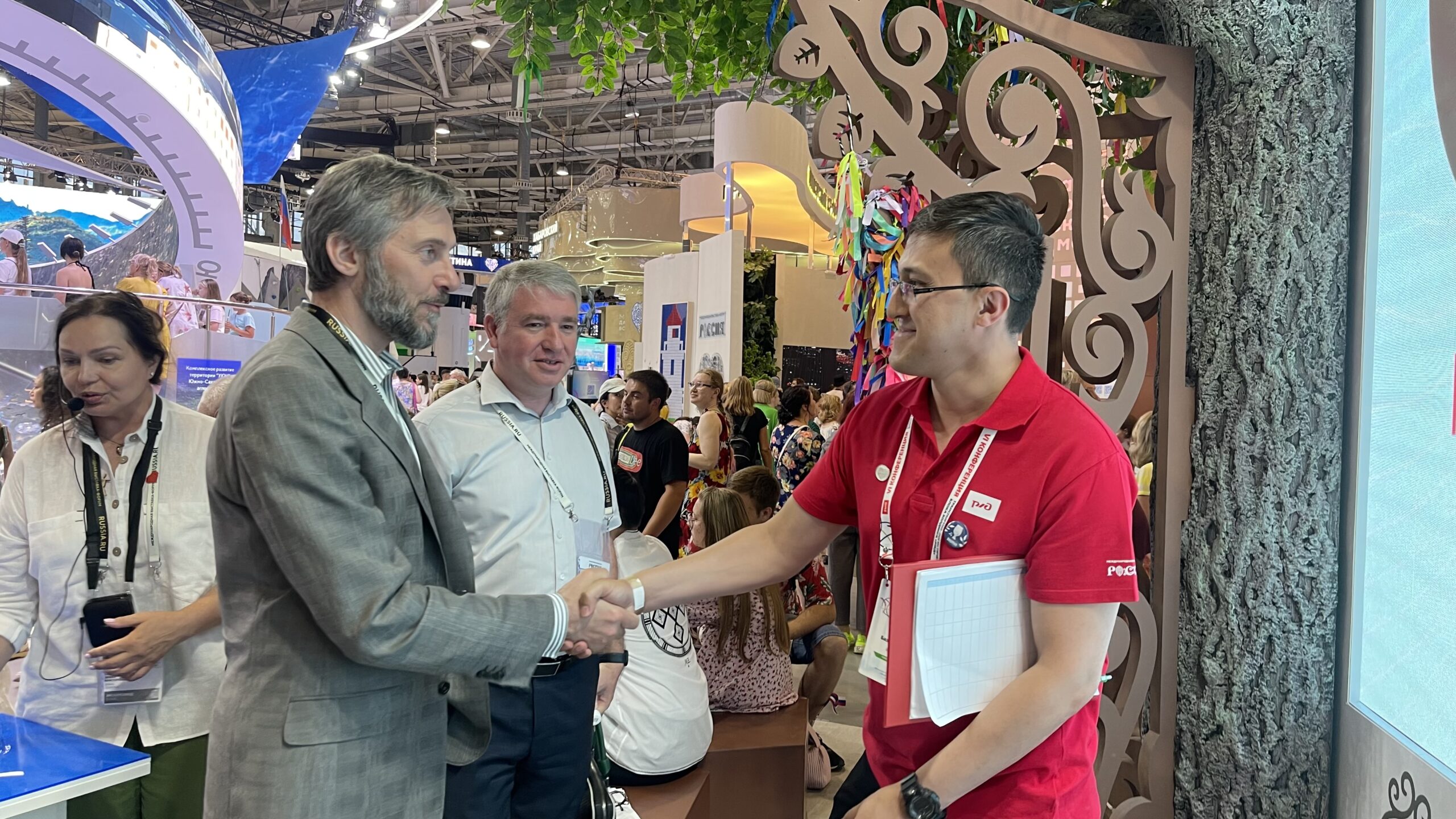 На стенде Республики Саха (Якутия) работали заместитель руководителя Представительства АК «Железные дороги Якутии» в Москве Юлия Ивановна Ряснова и ведущий инженер ТЦФТО ОАО «РЖД» Алдар Базаржапович Доржиев. Посетителей было много, люди интересовались пассажирскими перевозками в Якутии, условиями транспортировки грузов, качеством работы быстрого сервиса доставки «от двери до двери» с помощью системы «один клик». Строительство железной дороги до Магадана и реализация проекта Джалинда – Мохэ стали объектами оживлённых расспросов. Перспектива строительства Северо-Восточного коридора, призванного качественно улучшить железнодорожную логистику Дальнего Востока и России в целом, воспринималась гостями стенда Республики Саха (Якутия) с большим воодушевлением и заинтересованностью.
