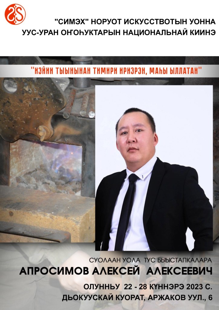 Алексей Апросимов представит изготовленные за годы деятельности предметы быта декоративно прикладного искусства и народных промыслов: якутские ножи, пешня, батыйа, изделия из кости и рога.