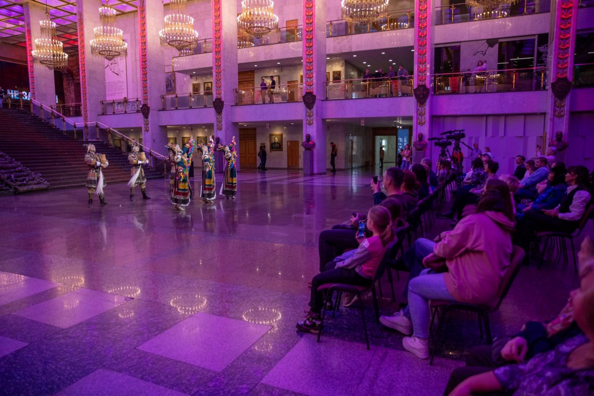 В Зале полководцев перед посетителями Музея Победы выступили артистка Анастасия Алексеева, хомусист-импровизатор из Якутии, лауреат первой степени и обладатель диплома международного общественного фонда «Туран Дунияси» Артур Семенов и народный ансамбль танца «Ситим» с танцами народов Севера.