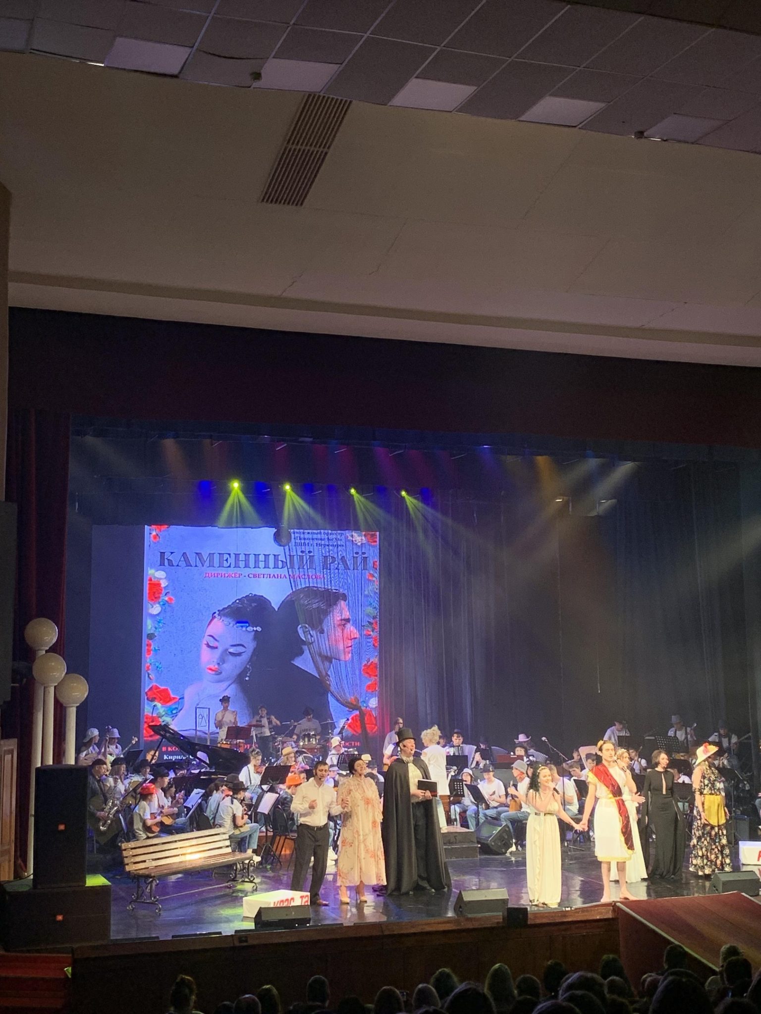 Двухчасовая увлекательная феерия стала ярким событием в культурной жизни города. Спектакль «Каменный рай» был поставлен по сценарию Ивана Маслова, мужа дирижёра оркестра народных инструментов Светланы Масловой. В основе сюжета — история любви двух оживших в парке скульптур, которые отправляются на поиски звезды.