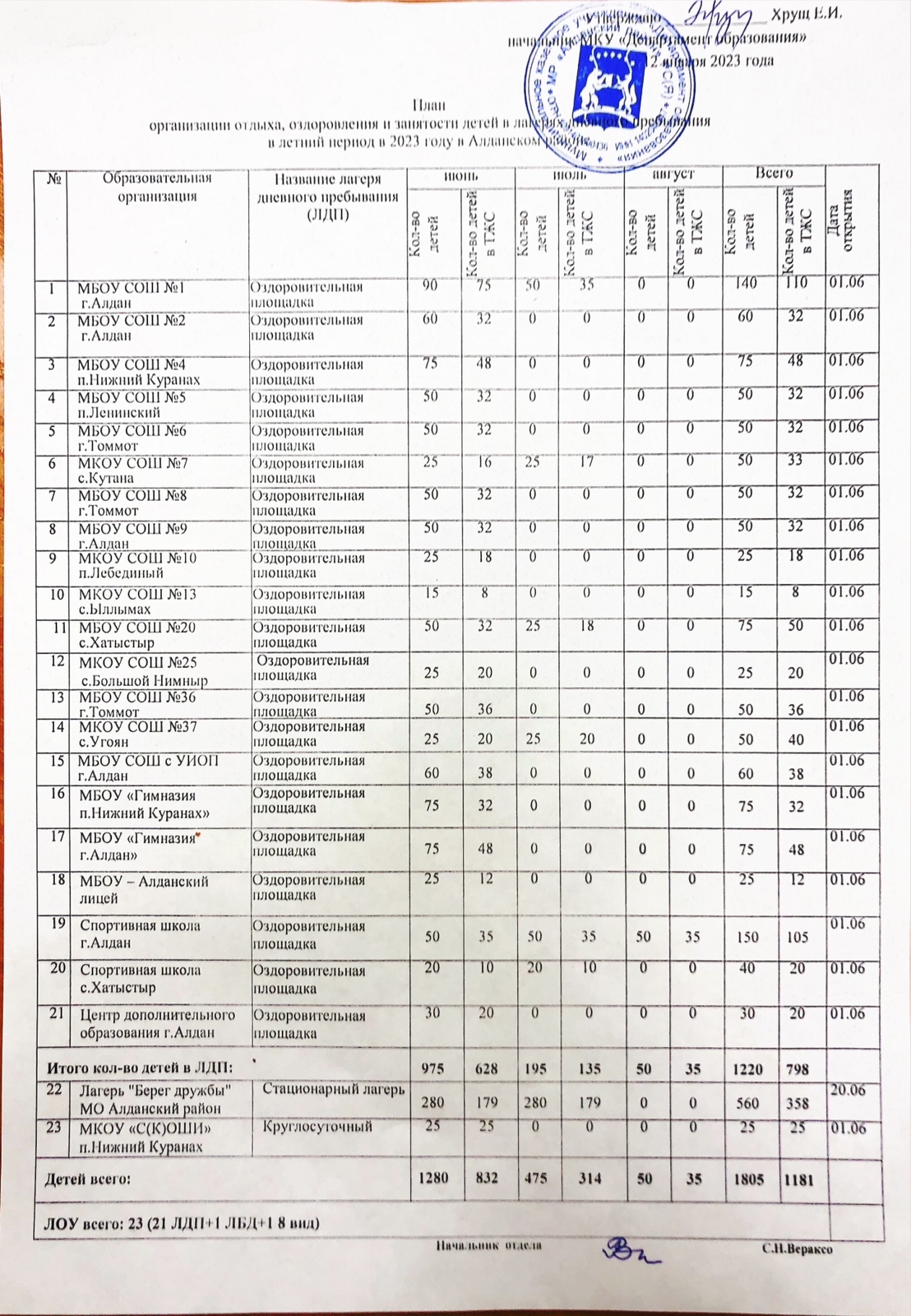 В раздел " Лето - время наших открытий " добавлен План организации отдыха, оздоровления и занятости детей в летний период в 2023 году в Алданском районе