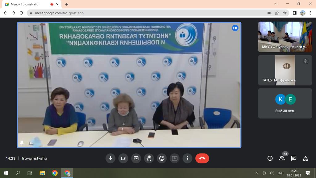 Сегодня, 18 января 2023 года, Управлением образования улуса проведена онлайн-встреча с I заместителем директора ИРО и ПК, д.п.н. Галиной Ивановной Алексеевой, заместителем директора, к.п.н. Ольгой Иннокентьевной Михалевой, старшим преподавателем кафедры дошкольного воспитания Марией Николаевной Слепцовой. Галина Ивановна в своем выступлении акцентировала внимание на инновационную деятельность детских ОО под чутким руководством опытных заведующих, совместными усилиями которых своевременно введены такие инновации, как цифровая трансформация, сетевой проект с Санкт-Петербургской дошкольной организацией, а также успешно действует центр по развитию речи для детей с ОВЗ и т.д.