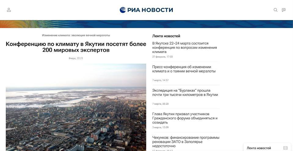 Конференция по климату в Якутске: РИА Новости запустили тематическую страницу