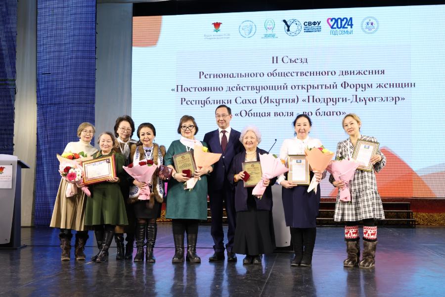 Сегодня, 1 марта, в Доме дружбы народов им. А.Е. Кулаковского состоялось пленарное заседание II съезда Постоянно действующего открытого Форума женщин Республики Саха (Якутия) «Подруги-Дьүөгэлэр», прошедшего под девизом «Общая воля – во благо». Участие приняли Глава Якутии Айсен Николаев, представители Государственного Собрания (Ил Тумэн) региона, профильных министерств и общественных организаций. В ходе заседания состоялось вручение республиканских наград, именных премий и награждение лауреатов по номинациям. В этом году съезд собрал 400 женщин со всей республики.