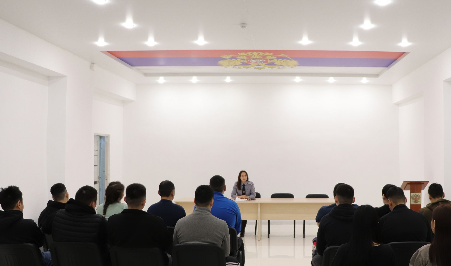 Инспектор по организации мобилизационной подготовки и гражданской обороны Анна Пейтер рассказала студентам кафедр защиты в чрезвычайных ситуациях и пожарной безопасности Горного института Северо-Восточного федерального университета имени М.К. Аммосова о специфике службы в уголовно-исполнительной системе, а также о целях, задачах и принципах мобилизационной подготовки и гражданской обороны в целом.