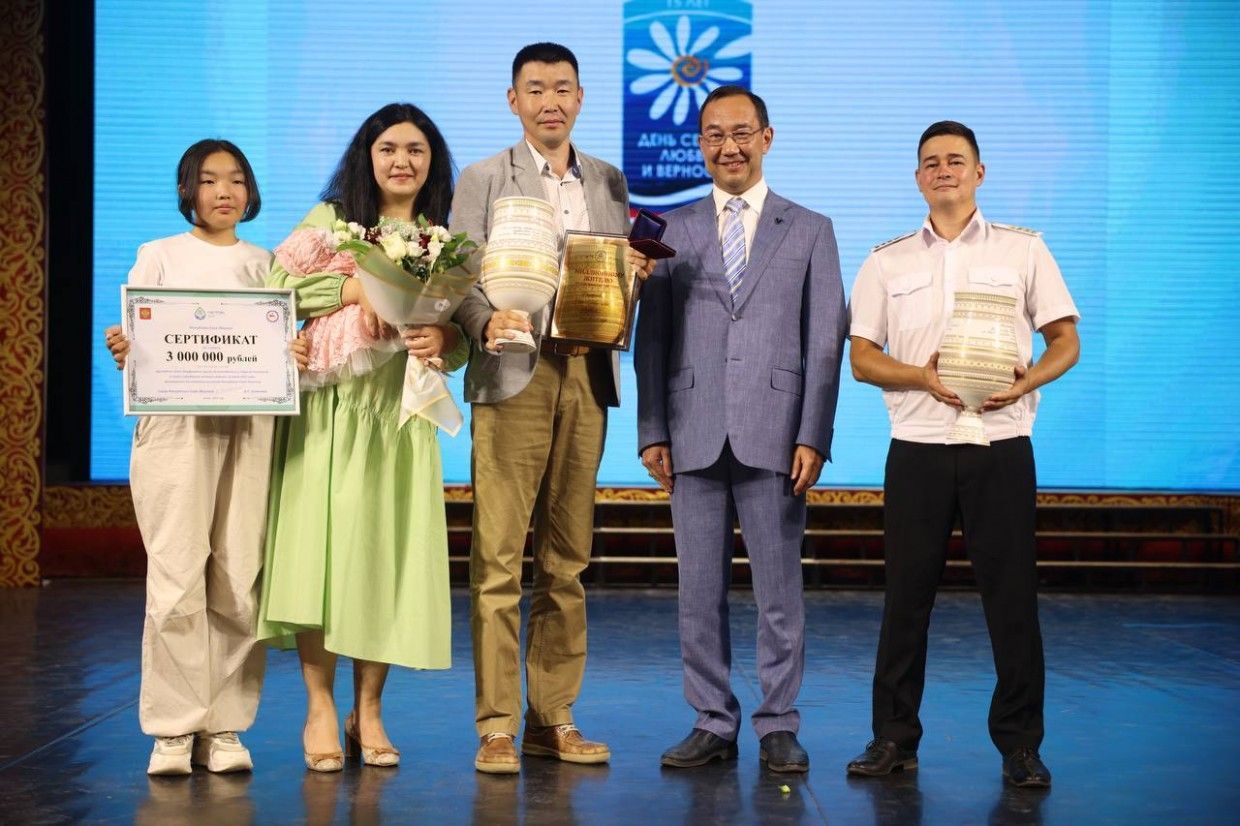 Глава республики Айсен Николаев накануне Дня семьи, любви и верности, 7 июля, вручил сертификат на 3 млн рублей семье Онуфриевых, в которой родился миллионный житель Якутии – малышка Саина.