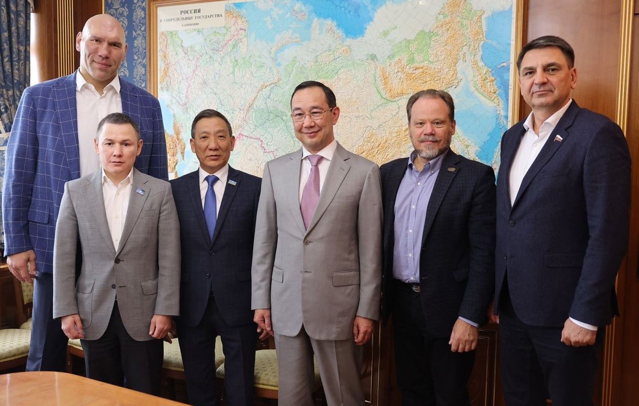 Глава Якутии Айсен Николаев 28 июня провёл рабочую встречу с депутатами Государственной Думы Российской Федерации Александром Шолоховым, Николаем Валуевым и Андреем Марковым.