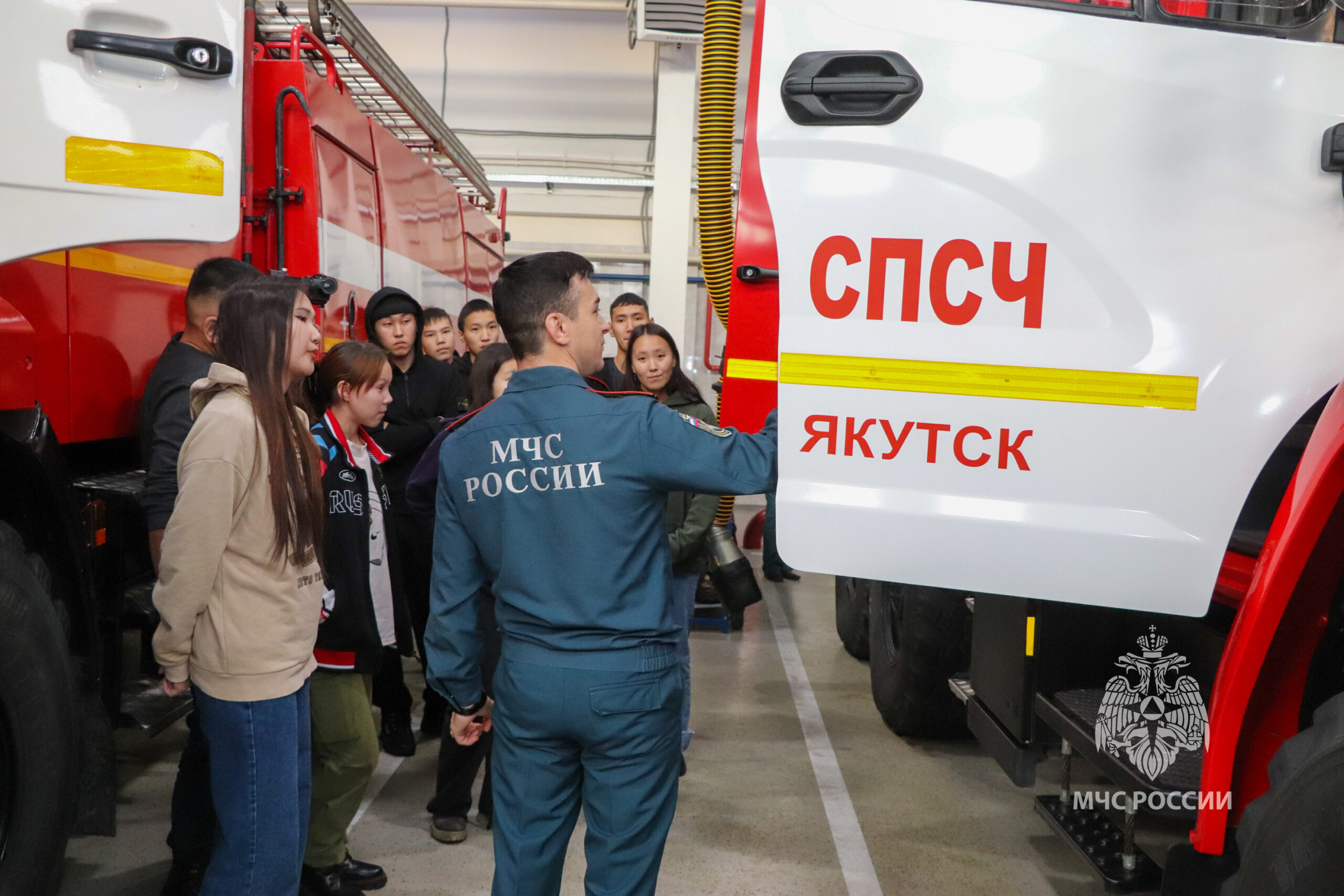 Ученики Бердигестяхской общеобразовательной школы, состоящие в дружине юных пожарных, побывали в гостях в Специализированной пожарно-спасательной части регионального управления МЧС России.