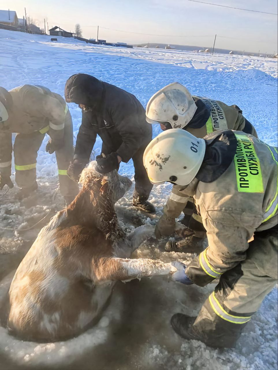 В якутском селе Амга пожарные спасли корову из проруби, сообщает ЯСИА. После успешной спасательной операции шесть сотрудников передали животное хозяину. Животное провалилось на улице Партизанской, 151, расположенной около озера. По словам хозяина Михаила Архипова, он только на минуту оставил своих коров без присмотра.