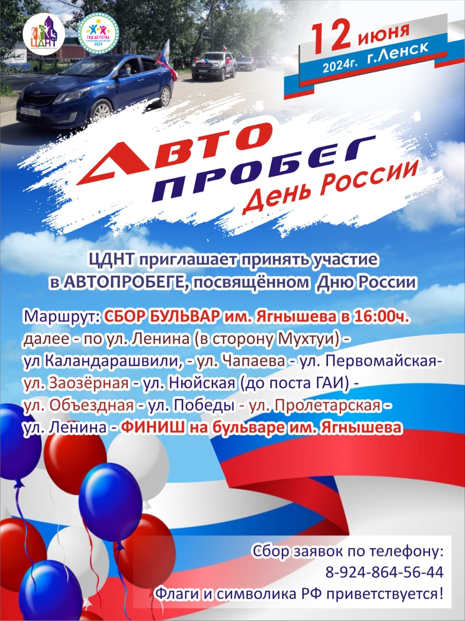 12 июня ЦДНТ приглашает принять участие в АВТОПРОБЕГЕ, посвящённом Дню России.