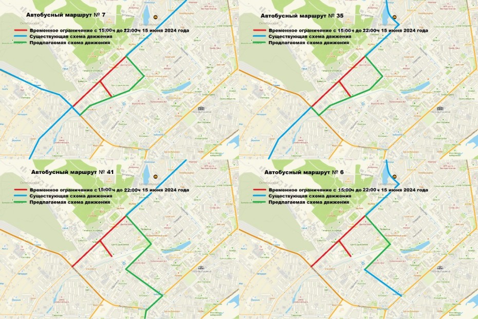 В связи с вышеизложенные маршрутные автобусы №6, №7, №35, №41, №102, №104, № 111 и №124 будут осуществлять движение согласно разработанным схемам объезда.