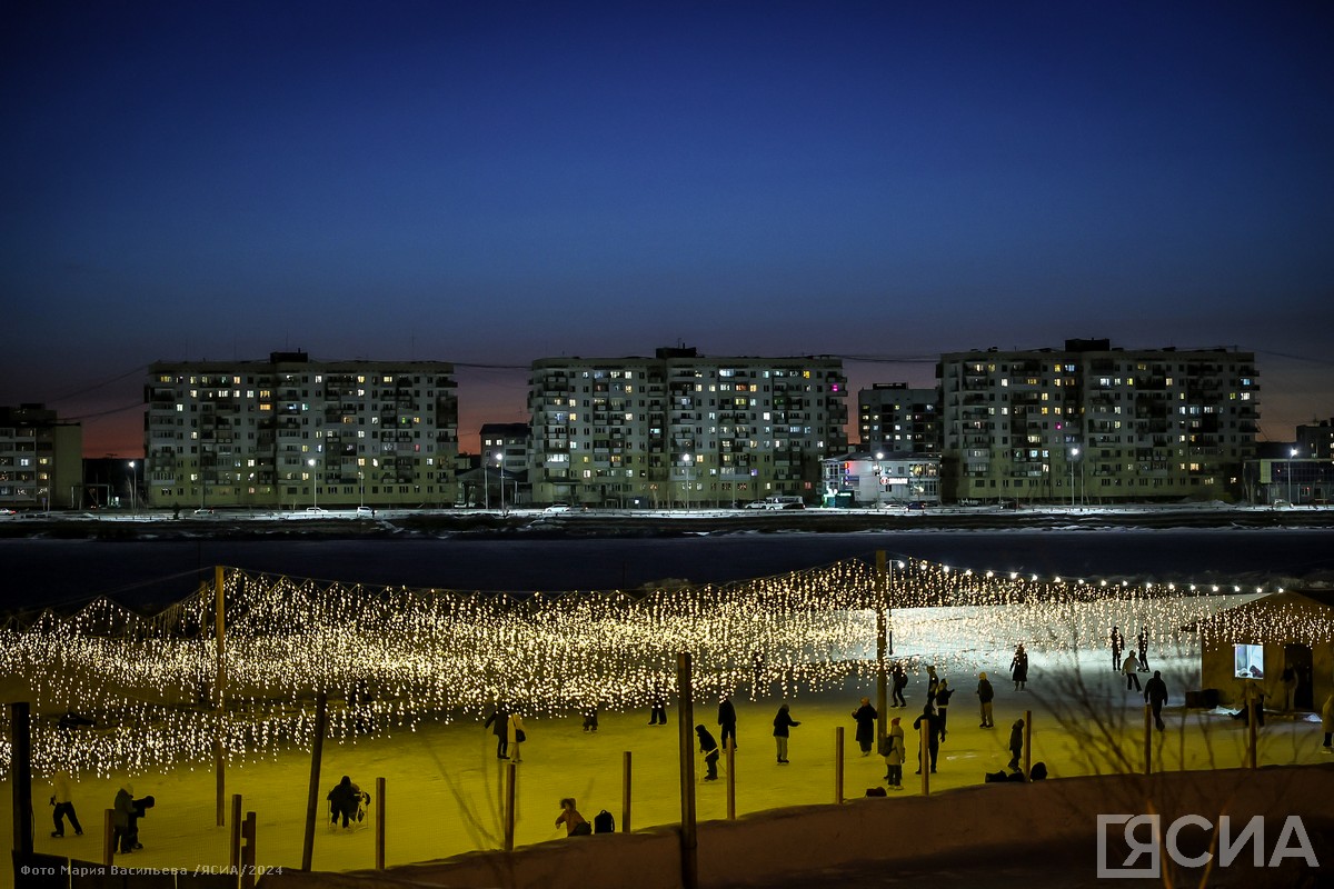 В этом году площадь катка увеличили до 10 тысяч квадратных метров Ледовый каток под открытым небом на озере Сайсары в Якутске планируют открыть 14 февраля.