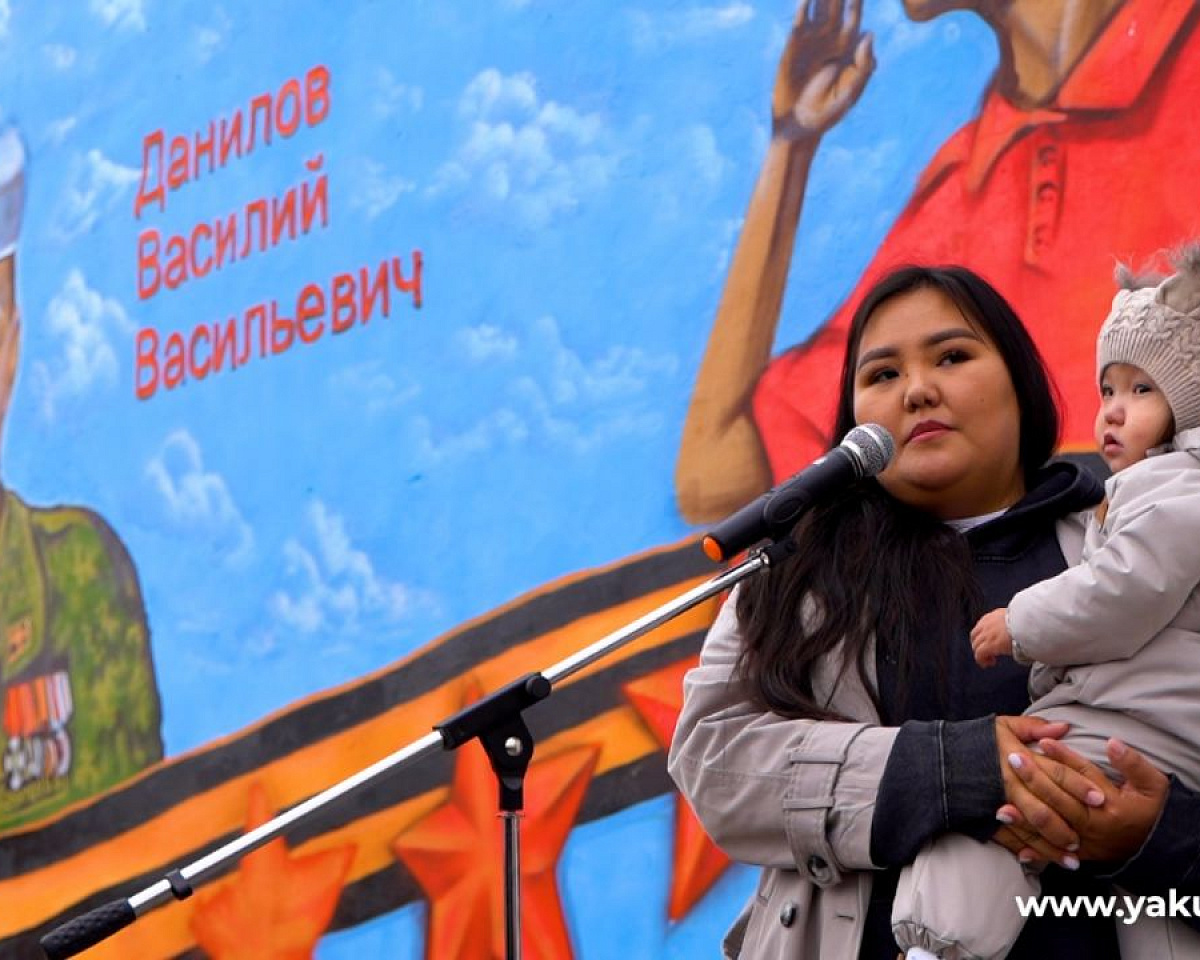 В рамках Всероссийской патриотической акции «Граффити. Защитник» 22 сентября в Якутске открыли мурал, посвященный участнику специальной военной операции Василию Данилову. Мурал на фасаде корпуса 1/2 202 микрорайона нарисовал художник патриотического проекта Евгений Курдюмов.