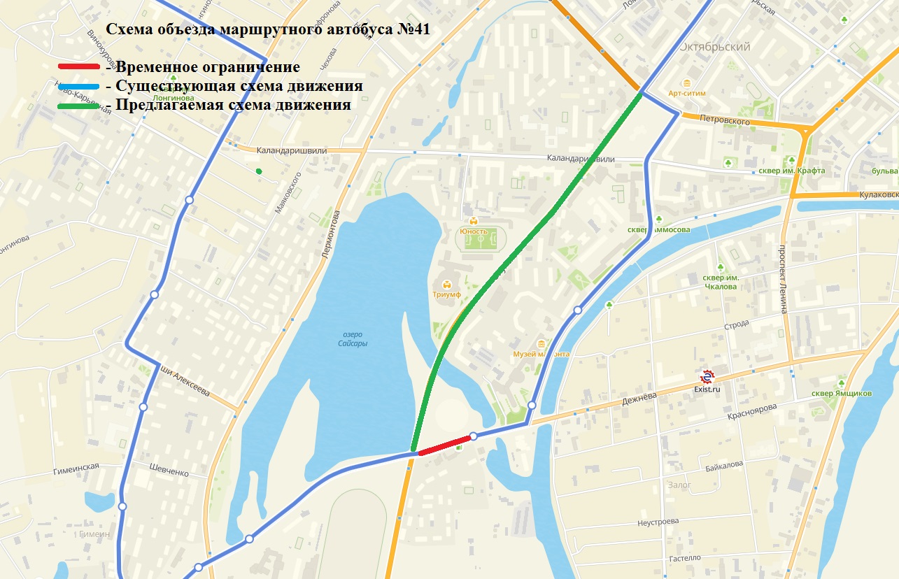 В связи с этим, маршрутные автобусы №5, №14, №17, №35 и №41 будут осуществлять движение согласно разработанной схеме объезда.