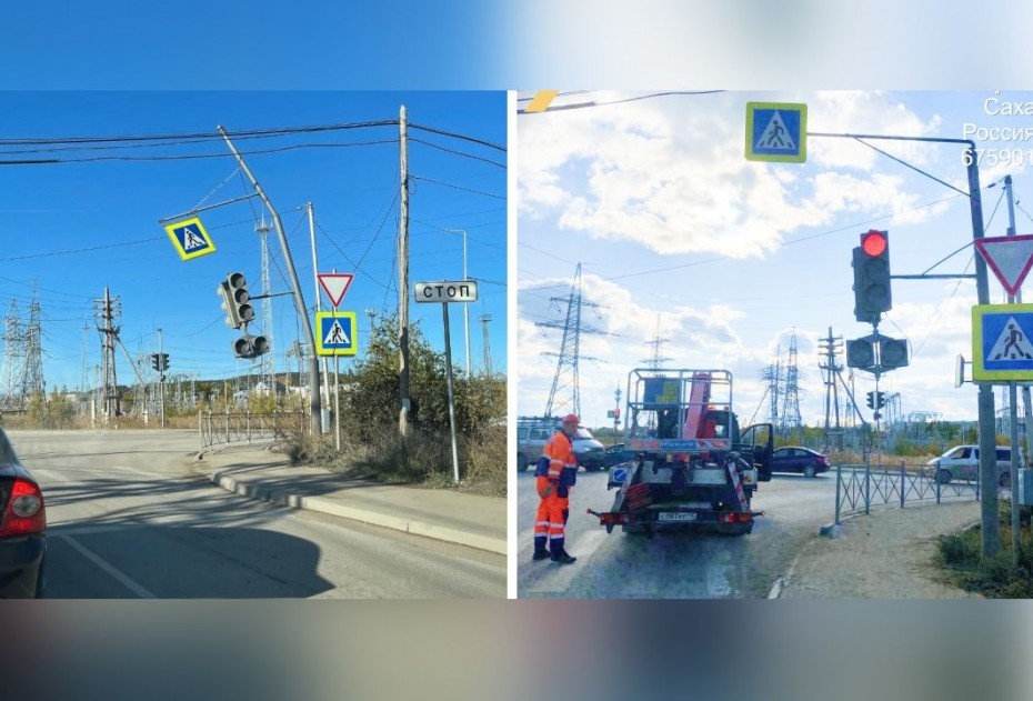 ЦУР Якутии зафиксировал сообщение и направил в Службу эксплуатации городского хозяйства. «Якутдорстрой» вернул накренившийся светофор на место и закрепил его.
