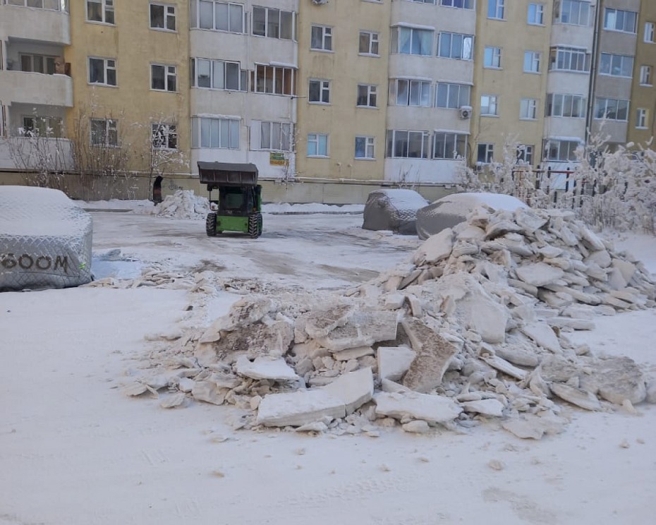 В Октябрьском округе Якутска активно чистят снег с крыш и наледи