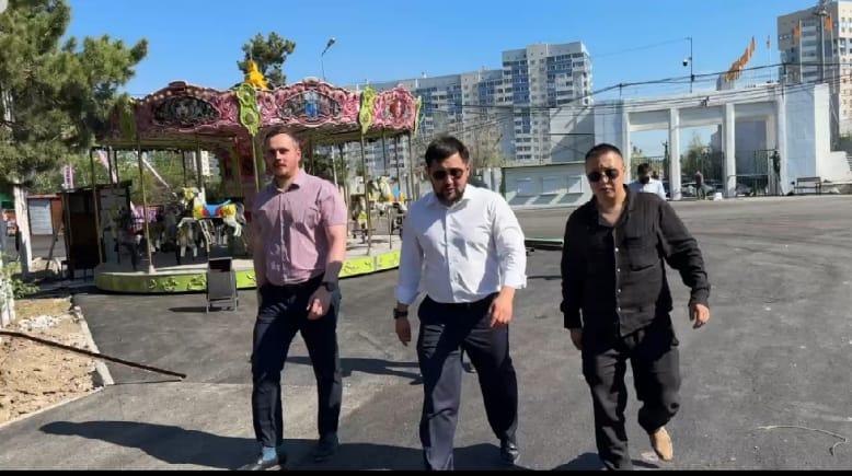 Прогуливаясь по парку, встретили главу города Евгения Григорьева. Идет ремонт парка. По мнению мэра Якутска, завтра к открытию городской парк готов. Или нет?