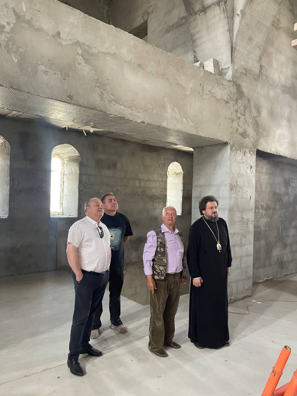 В приложение рабочей встречи архиерей, наместник и настоятель храма иеромонах Гермоген (Рубцов), а также ктитор Всехсвятского храма С.С. Игнатенко ознакомились с ходом строительных работ и благоустройства территории.