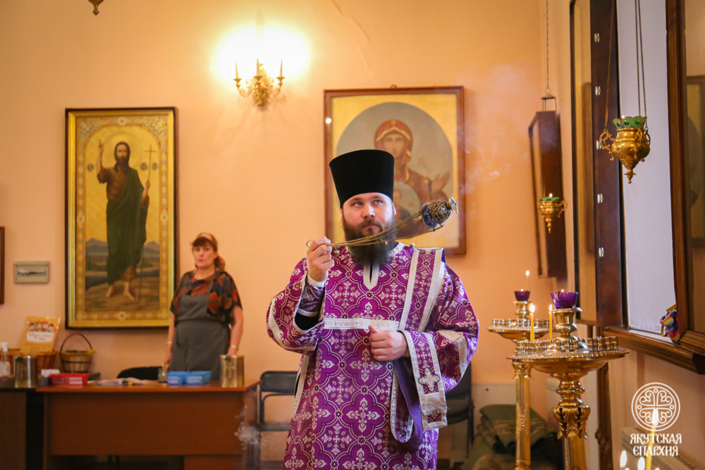В канун праздника Происхождения Честных Древ Животворящего Креста Господня, 13 августа 2023 года, архиепископ Якутский и Ленский Роман возглавил праздничное Всенощное бдение, за которым на середину храма был изнесен крест для всеобщего поклонения.