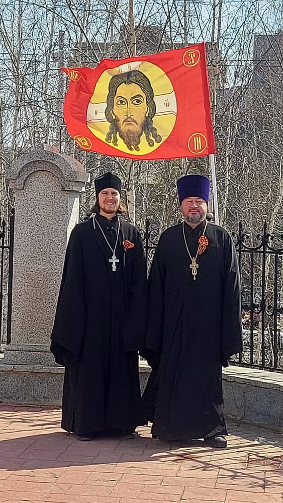 К акции присоединились и православные мирнинцы. Несколько стягов установили на территории Свято-Троицкого храма, и кроме того на балконах и окнах квартир неравнодушных горожан.