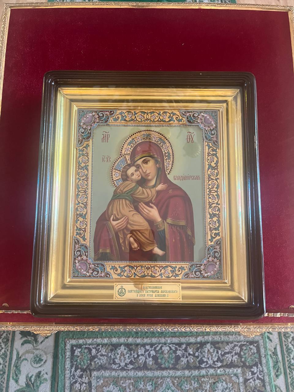 На середину храма для поклонения верующих был вынесен образ Владимирской иконы Божией Матери, принесенный в дар Святейшим Патриархом Алексием II.