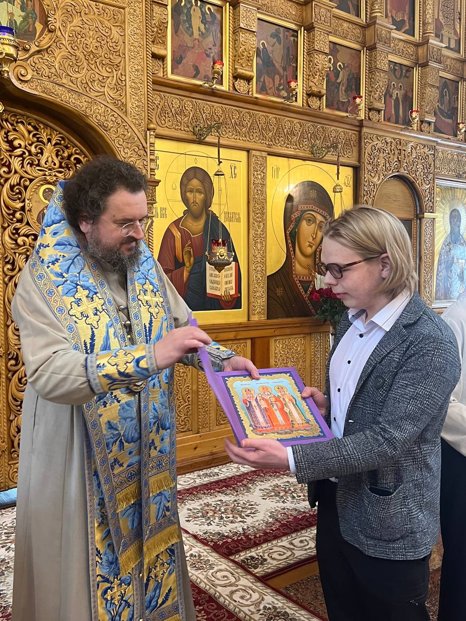 Победителей молодёжной интеллектуальной игры «Азбука веры» чествовали в Казанском храме города Нерюнгри 21 февраля 2023 года.