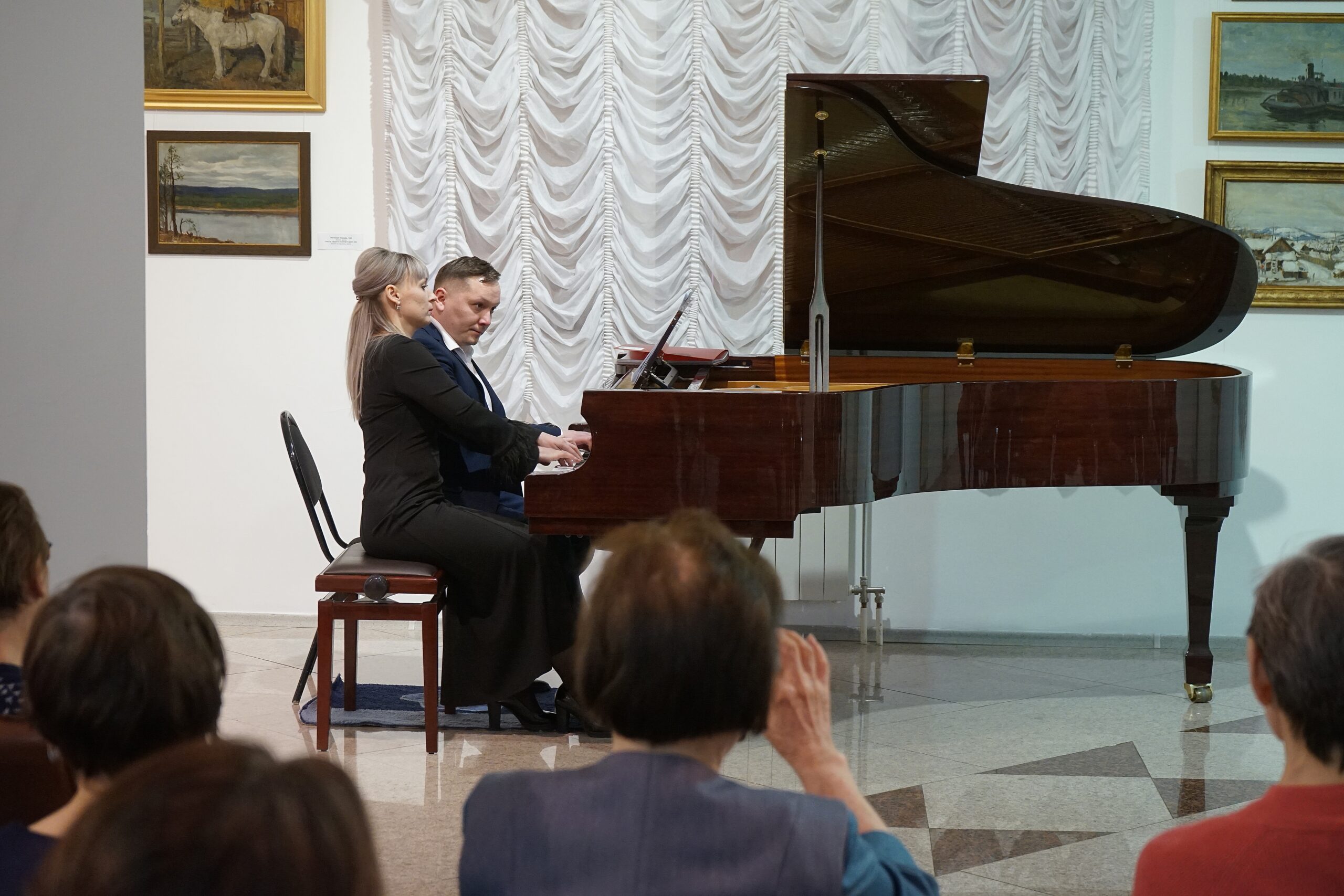 Преподаватели Высшей школы музыки Олеся Межевич и Сергей ЛебедевПрасковья Герасимова не первый год проводит концерты в Пасхальном фестивале и в гостиной Музея. На этот раз там прозвучали 15 романсов Рахманинова. Камерная вокальная лирика гениального композитора была его творческой лабораторией и исповедальным дневником его души. Он сам как-то ответил, что: «если хотите узнать меня, слушайте мою музыку». Известно, что все романсы, а их чуть более 80, созданы в российский период его жизни, с 1890 по 1916 гг. После эмиграции в США в декабре 2017 г. Рахманинов не сочинил ни одного романса. Большая часть вокальной лирики написана композитором в имении Ивановка Тамбовской области, которое принадлежало его родной тете Варваре Аркадьевне Сатиной, с тенистыми садами и парками, полными сирени, ландышей, маргариток, привольных широких степей вокруг…