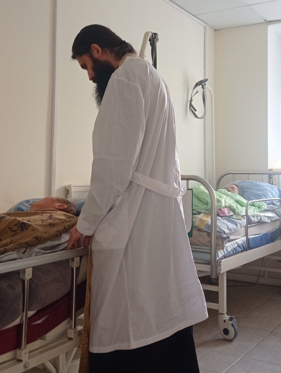 Священник совершил молебное пение о врачах и пациентах больницы, а также таинства Покаяния и Евхаристии.