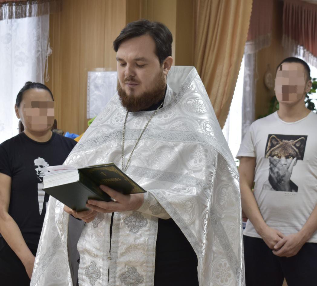 В учреждении отслужили молебен о здравии, а затем были совершены Таинства Крещения, Исповеди и Причащения.