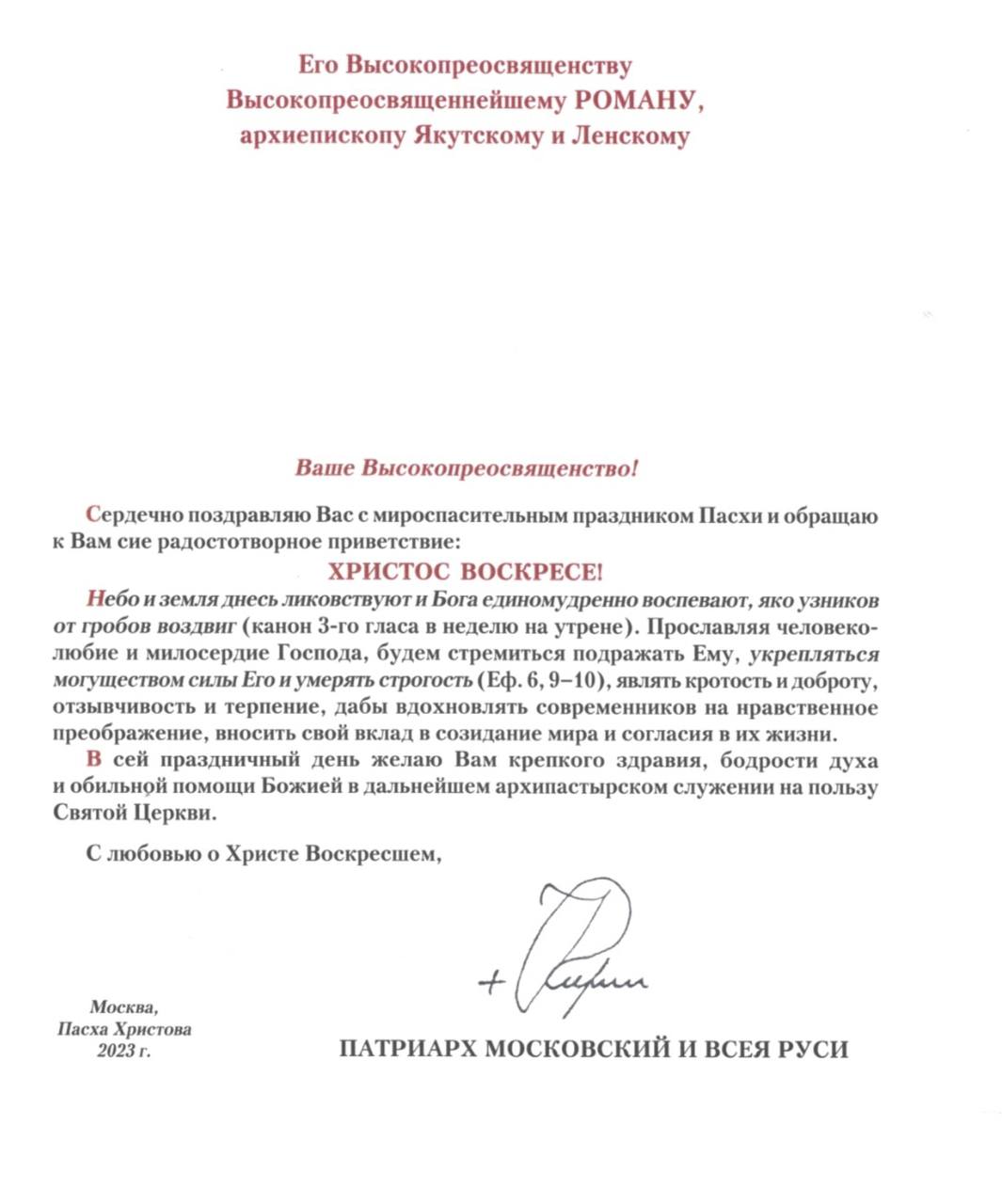 В адрес Якутской епархии поступают поздравления с Пасхой.