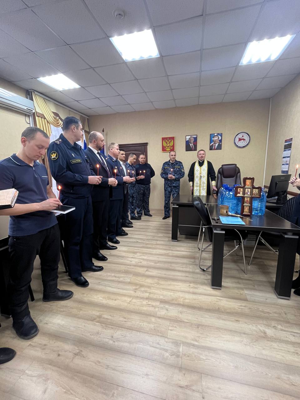 Священник благословил труд сотрудников и окропил святой водой служебные кабинеты и рабочие места.