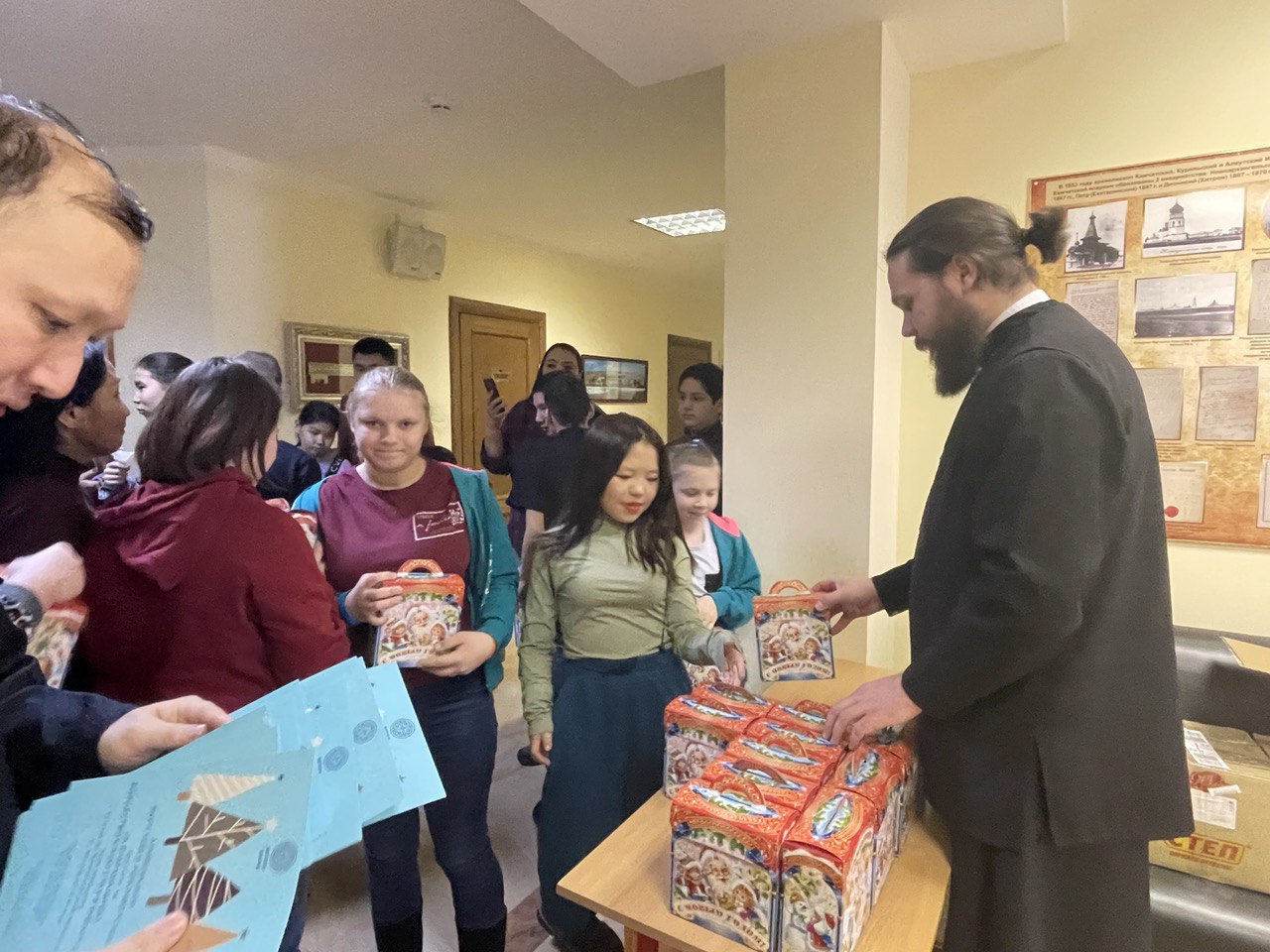 Каждый гость получил сладкий подарок от владыки Романа, подготовленный участниками православного молодежного движения и студентами Якутской духовной семинарии.