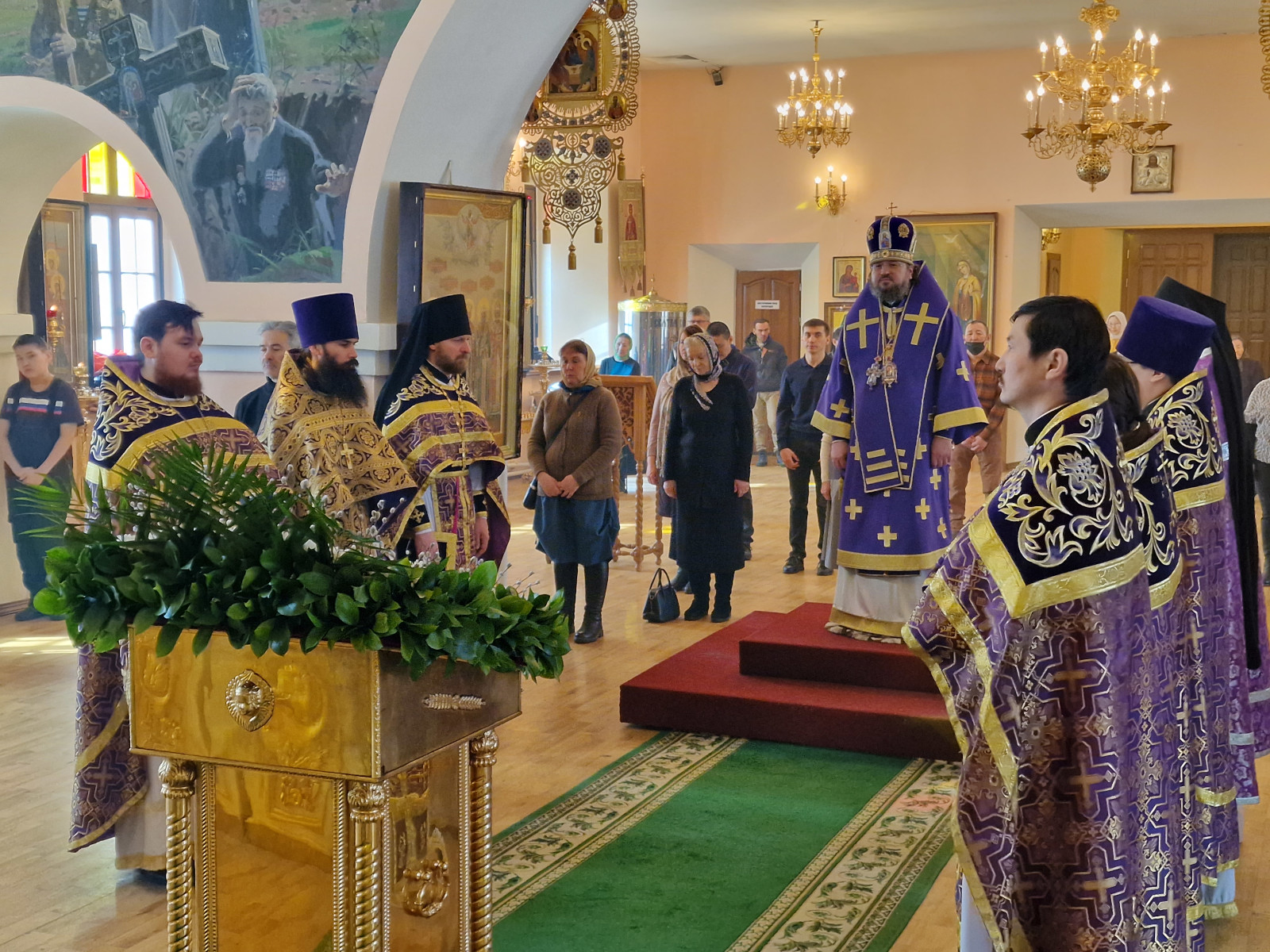 После Литургии владыка совершил Чин омовение ног — особое богослужение, за которым вспоминается евангельское событие, следовавшее сразу за Тайной Вечерей: Господь Иисус Христос, показывая Свое смирение, омыл ноги Своим ученикам. К такому же смирению, готовности послужить друг другу, призываются все христиане.
