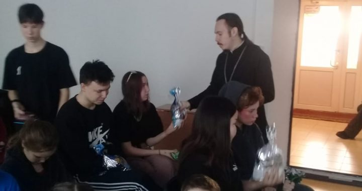 В учреждении проживают 33 воспитанника. Отец Святослав поздравил детей с праздником Рождества Христова, ответил на интересующие вопросы и подарил подарки, которые приобрели прихожане храма.