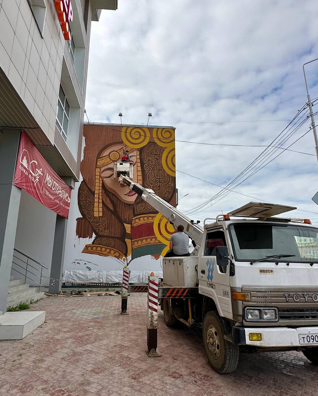 Художница Кыдана Игнатьева: Заканчиваю мурал якутской хотун в мехах