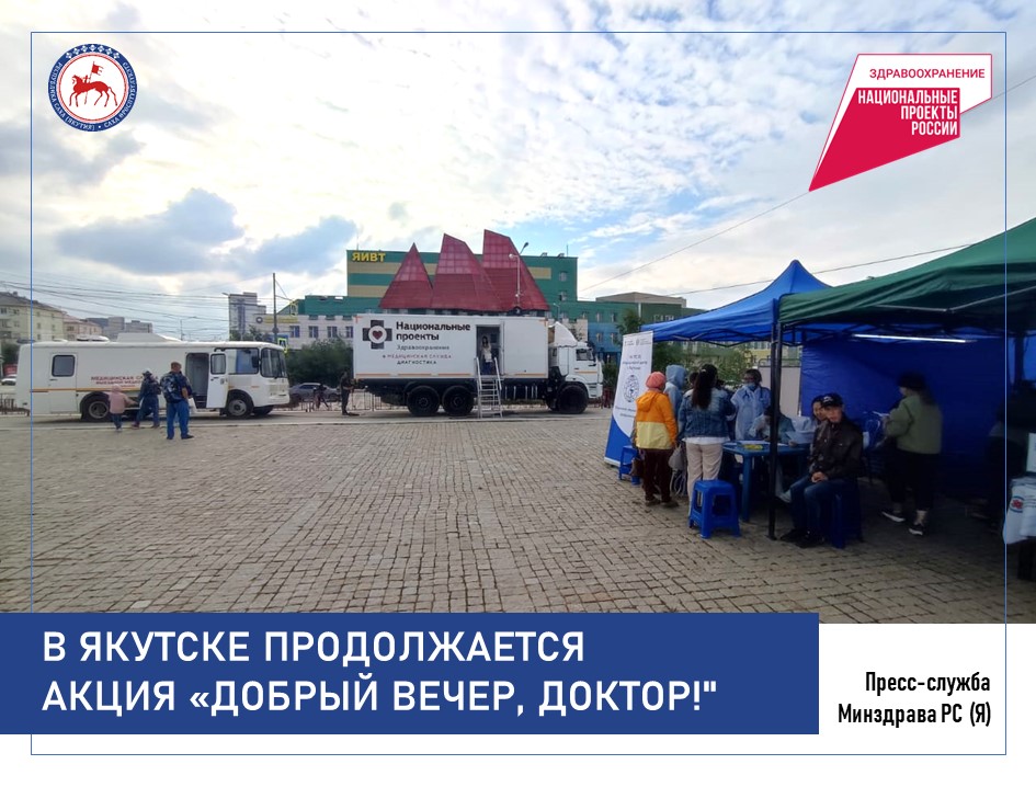 В Якутске продолжается акция « Добрый вечер, доктор! «. Придя на акцию, жители Якутска получат возможность пройти медосмотр, проконсультироваться у врачей и сдать необходимые анализы вне рабочего времени.