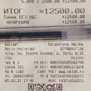 Если нужен Кассовый чек с QR кодом цена +15%